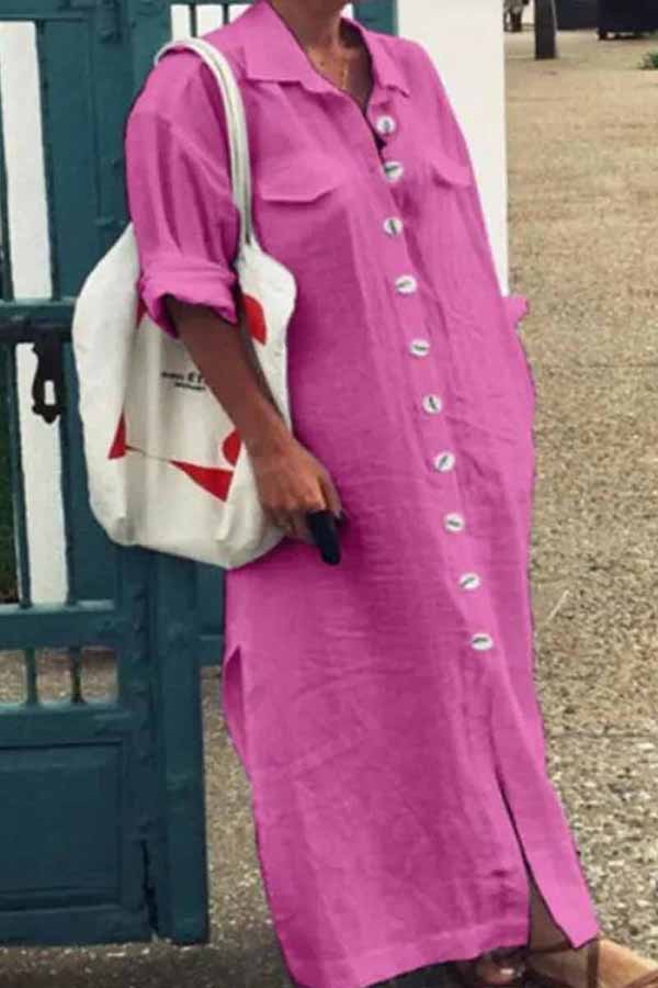 Casual Solid Patchwork Turndown Collar Shirt Dress Dresses(3 Colors)
