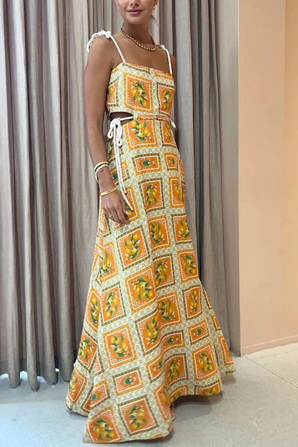 Olvera Red Flower Cropped Bell Sleeve Long Dress